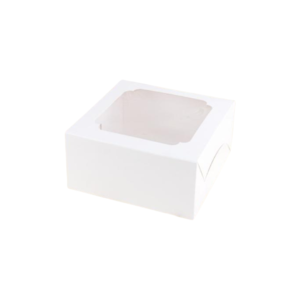 Boxjourney กล่องเค้กครึ่งปอนด์หูหิ้ว หน้าต่างวีเชฟ สีขาว (20pcs)