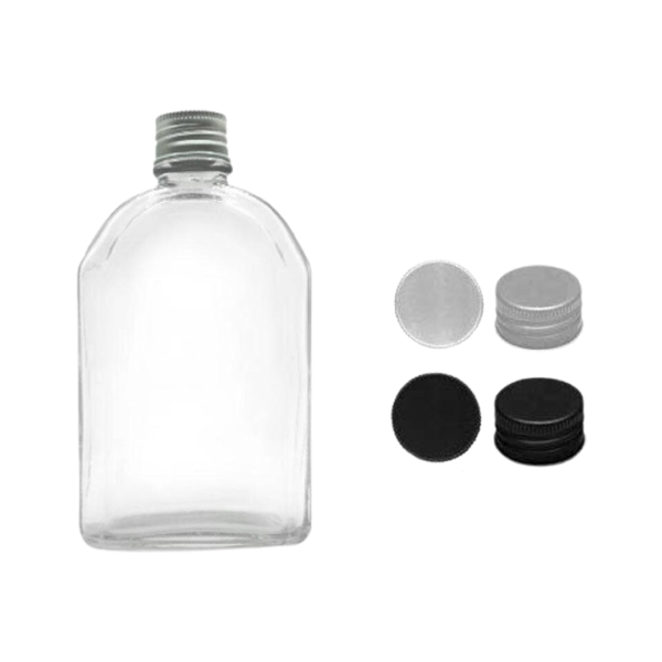 ขวดแก้วแบนเหลี่ยมโค้ง ฝาอลูมิเนียม